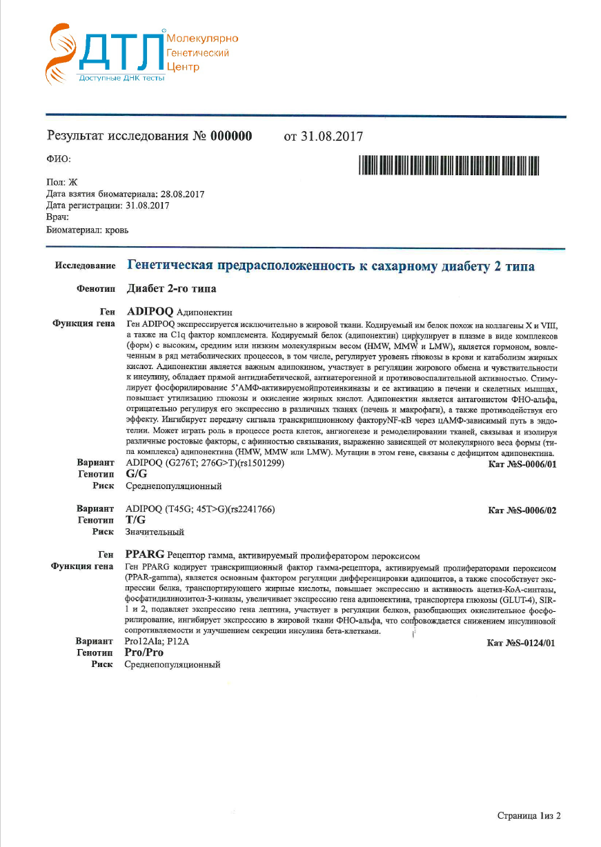 Как оплатить ДНК тест на предрасположенность к сахарному диабету 2 типа