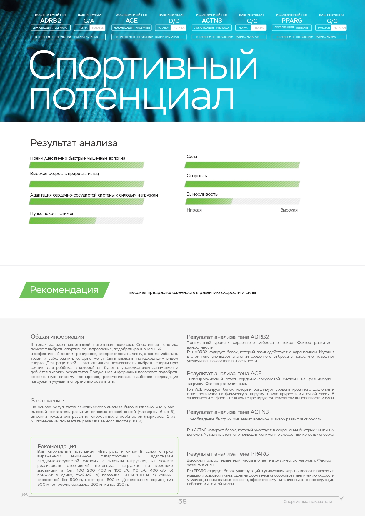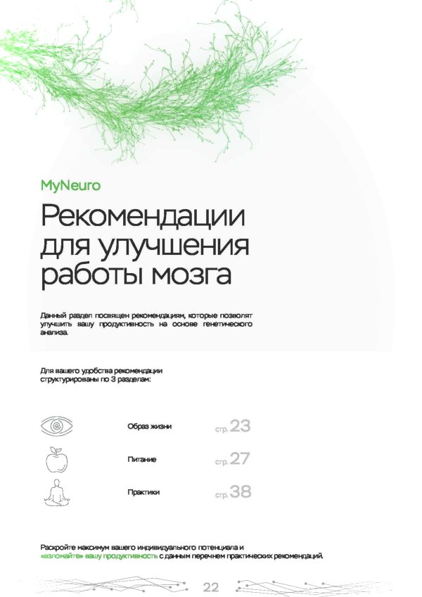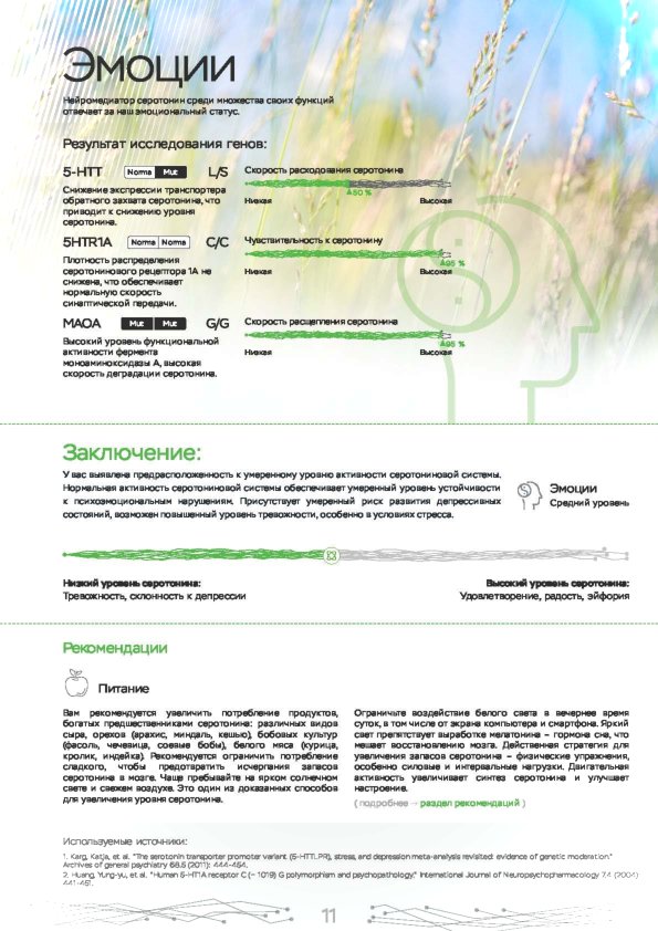 Этот ДНК анализ показывает влияние наиболее важных 10 генов на психическое и эмоциональное состояние. Именно они регулируют выработку гормонов, работу нейромедиаторов. Используйте знания о природных свойствах своего организма для борьбы со стрессом, повышения работоспособности и общего тонуса. Каждый человек индивидуален, поэтому мы рекомендуем пройти наш генетический нейро тест в Нытве.